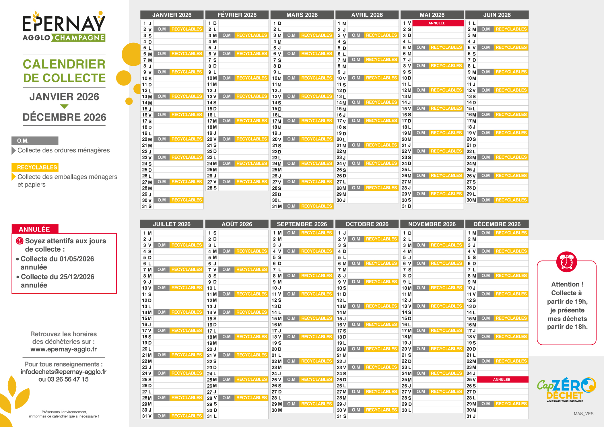 Calendrier de collecte 2026 - MAS_VES